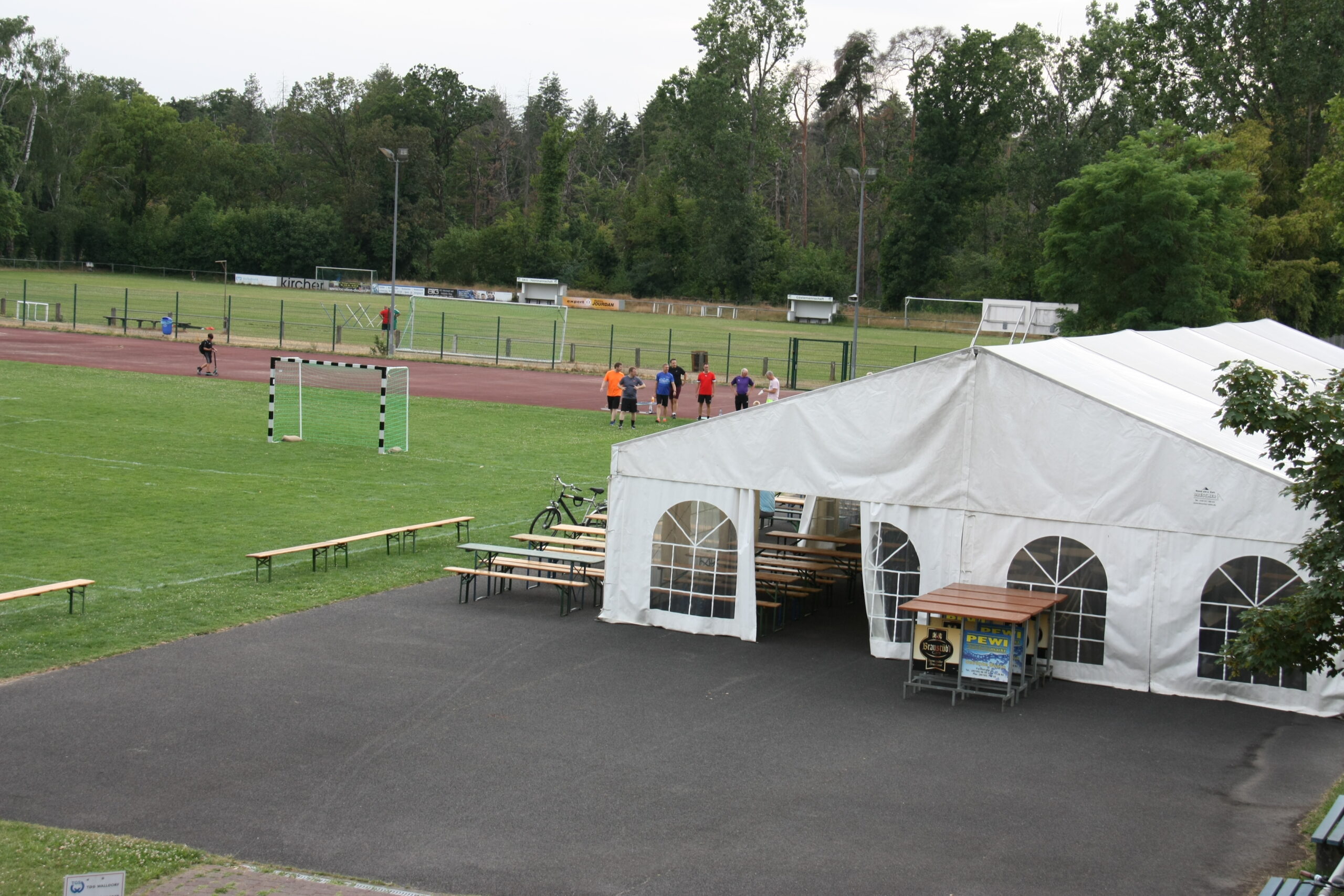 Am späten Nachmittag begaben sich die A-Jugenden in den Sand. Hatte man im weiblichen Bereich einige Anmeldungen, gab es im männlichen Bereich leider keine auswärtigen Mannschaften, weshalb sich ein Mix aus erster und zweiter Damenmannschaft zusammenschloss, um den Jungs der männlichen A-Jugend wenigstens ein kleines Turnier zu ermöglichen. Wie auch in den letzten Jahren gab es am Samstagabend die Möglichkeit, auf dem Rasenplatz der TGS und der SKG Walldorf (an dieser Stelle ein großes Dankeschön!) zu zelten. Dies nutzten nicht nur die Heimmannschaften, sondern auch einige Mannschaften von auswärts. Die TGS bot am Abend ein kleines Programm aus Musik und Stockbrot am Lagerfeuer.