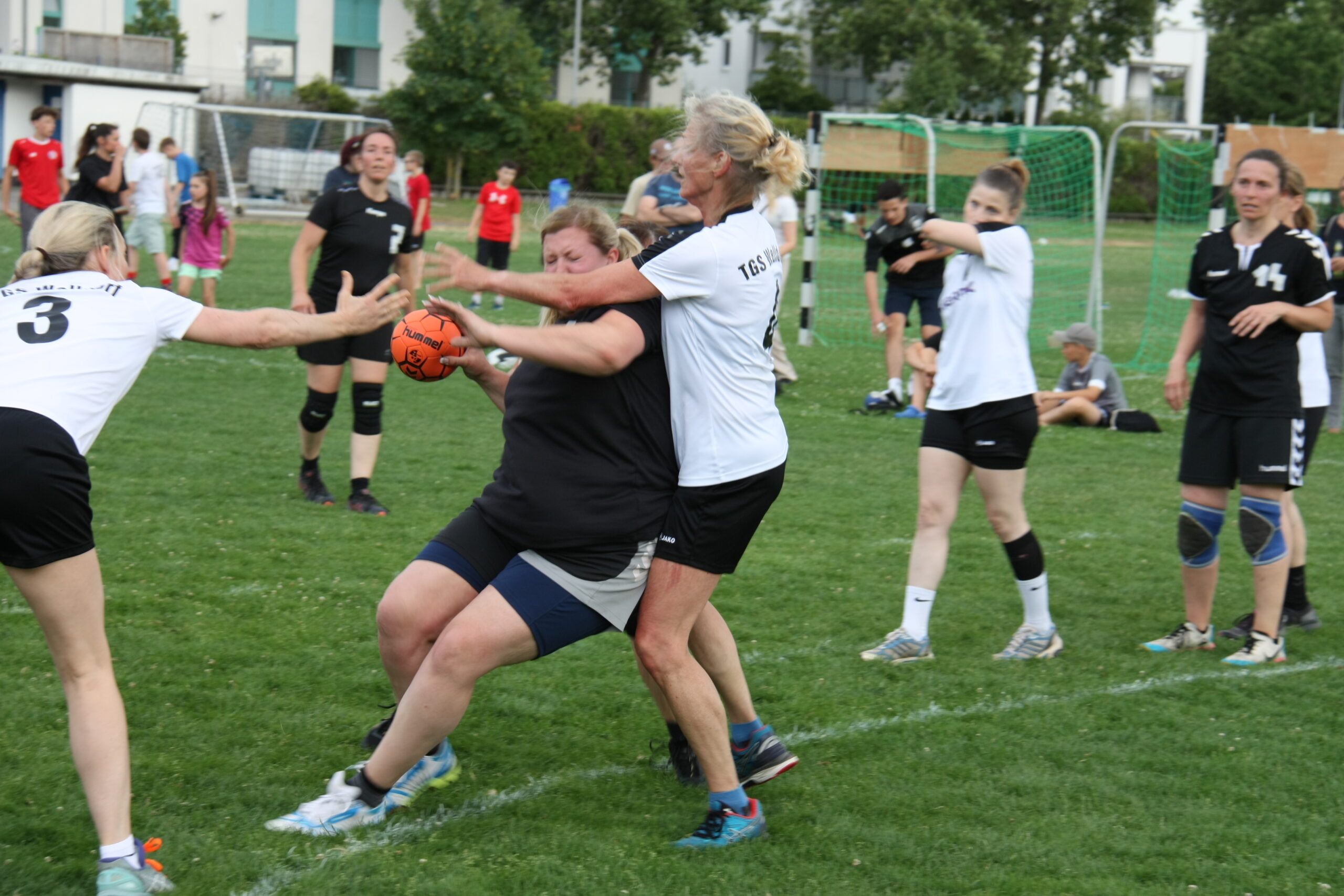 Hier gab es nach einer kurzen Begrüßung ein Alt-Damen und Alt-Herren-Turnier, bei dem ehemalige aktive Spielerinnen und Spieler nochmal ihr Können auf dem Rasenplatz zeigen konnten. Es folgte die akademische Feier, der neben Abteilungsleiter Michael Winn und Lutz Mehltretter als Präsident der TGS, auch David Delp als Vizepräsident des HHV im Bereich Jugend die Arbeit und den Erfolg der Handballabteilung würdigten. Die Bedeutung des Ehrenamtes wurde dabei in allen Ansprachen besonders hervorgehoben.
