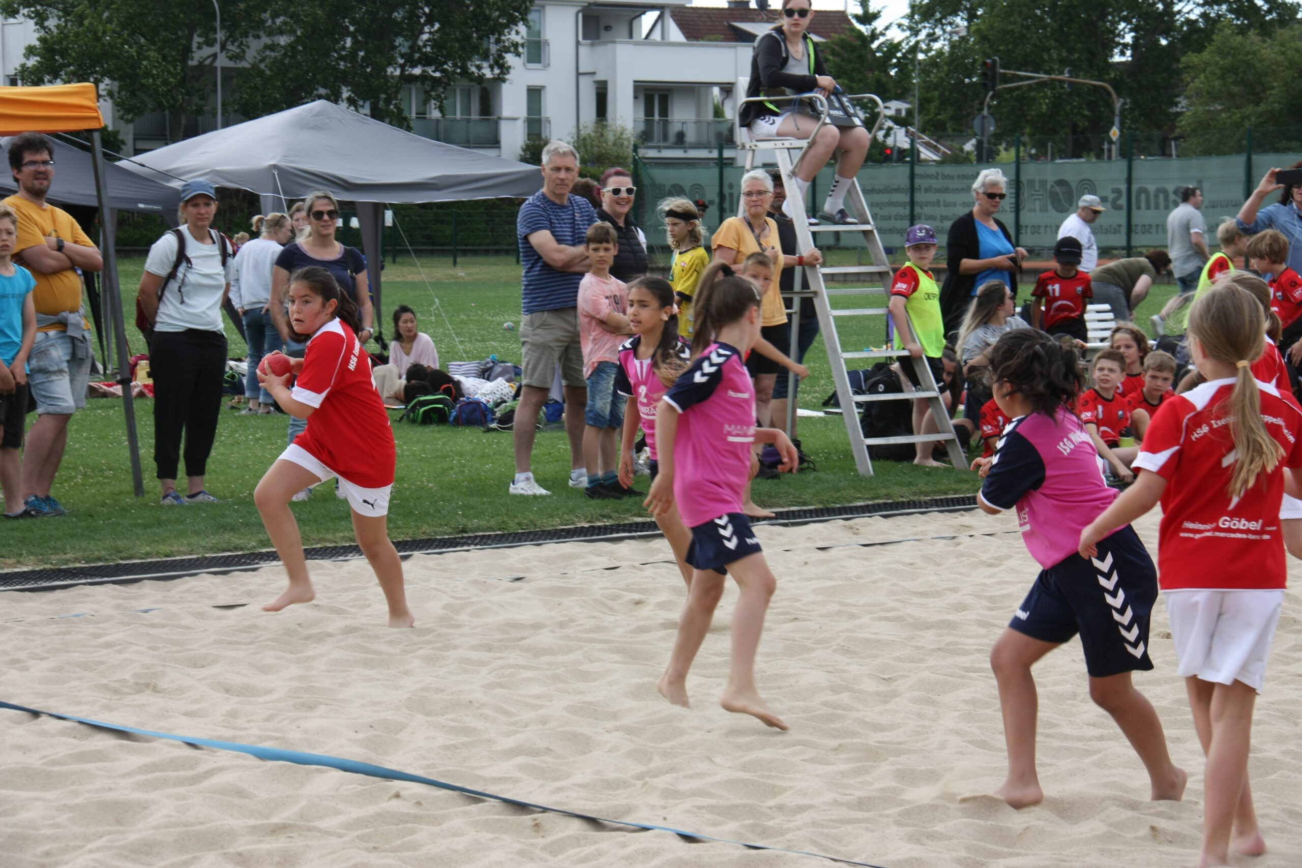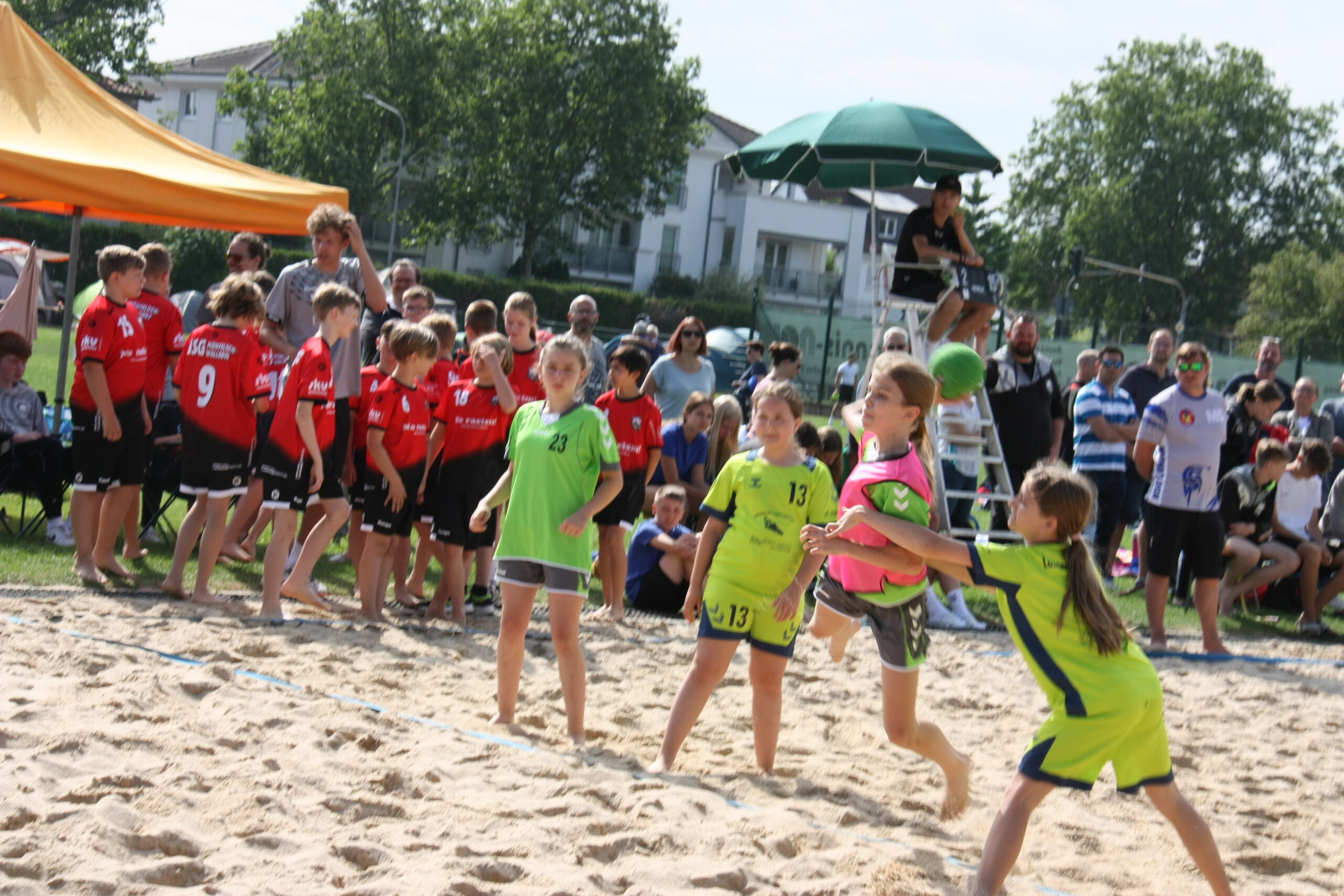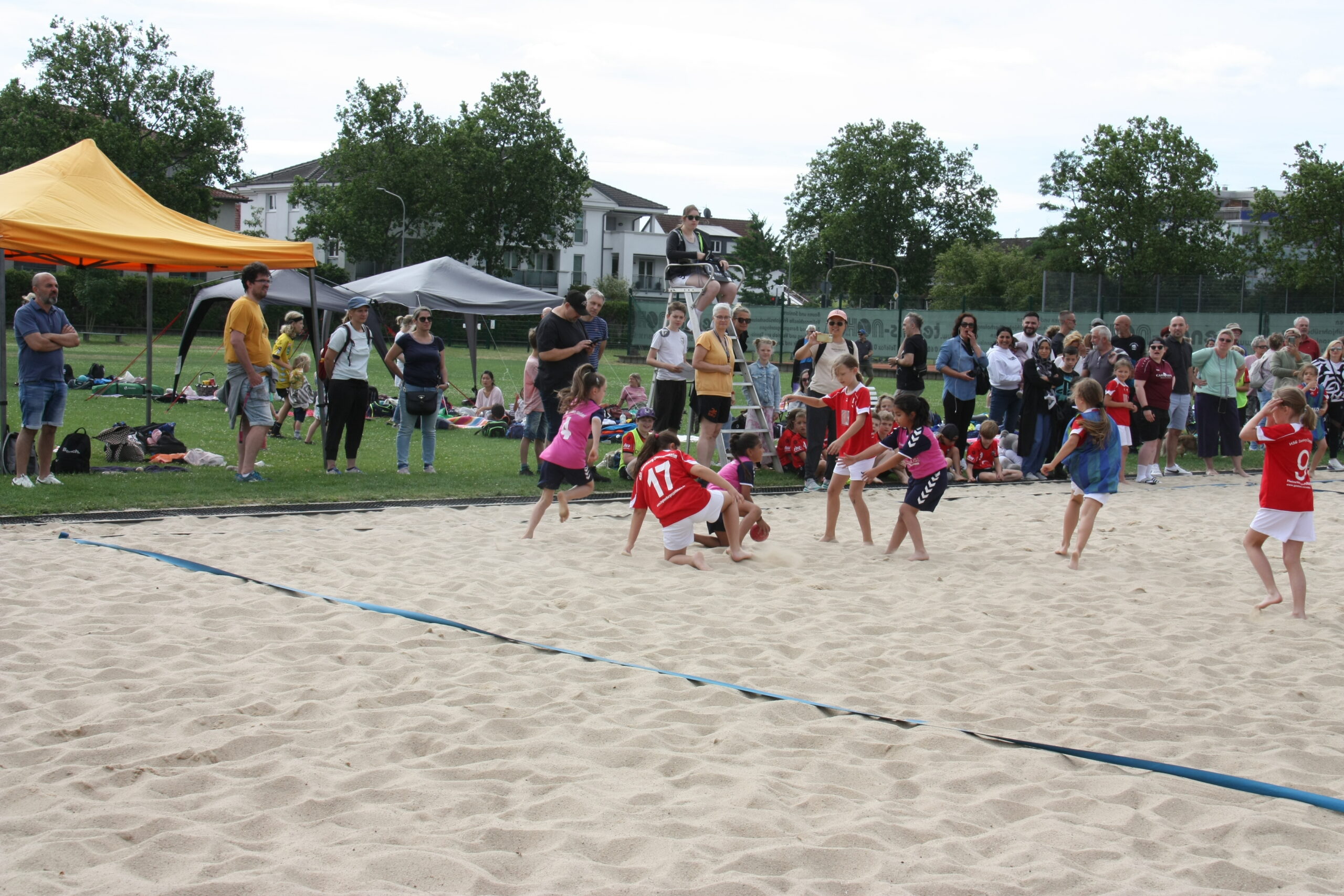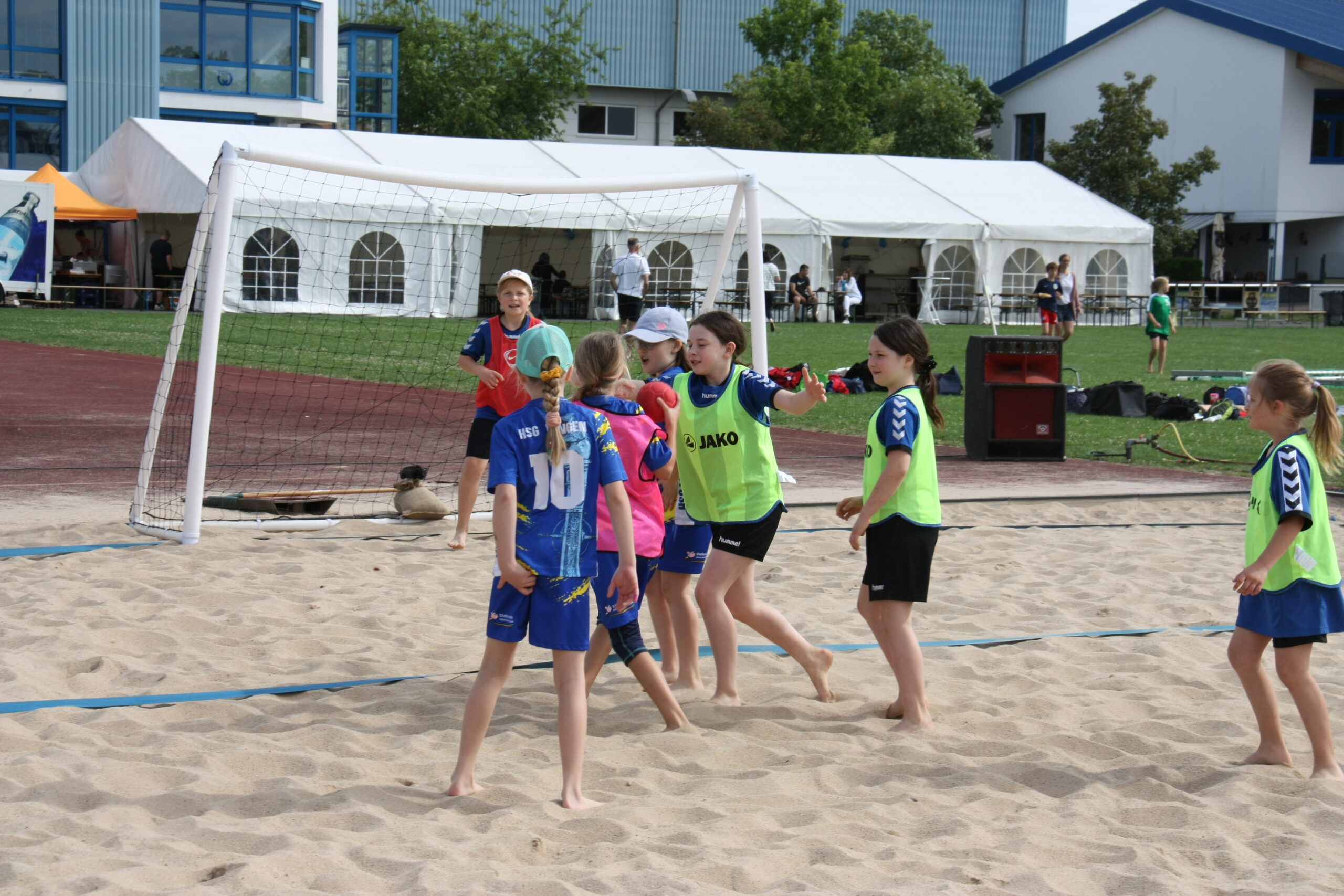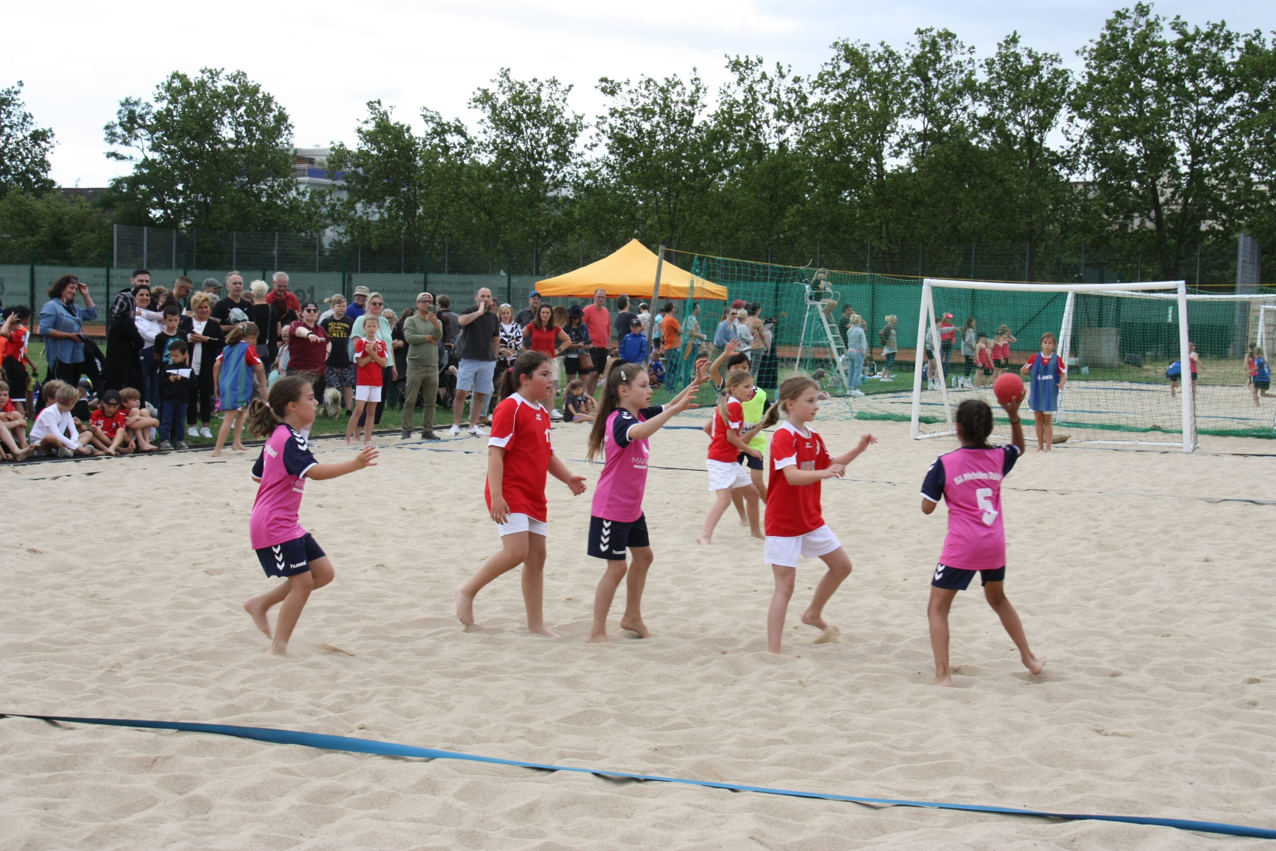 Am Sonntagmorgen weckte die TGS alle Übernachtungsgäste mit einem Frühstück, ehe die Mannschaften der männlichen und weiblichen D-Jugenden auf dem Beachplatz starteten. Diese befanden sich teilweise zum ersten Mal auf dem unebenen Untergrund und hatten viel Freude beim Handballspielen im Sand. Parallel dazu begaben sich die Mini-Mannschaften auf zwei Rasenfelder und zeigten ebenfalls, was sie alles können. Viele begeisterte Familienangehörige konnten ihre Kinder anfeuern und bejubeln. Ab 13:30 Uhr begaben sich die männlichen und weiblichen B-Jugenden zum Abschluss dieses langen, erfolgreichen Turnierwochenendes auf den Sand und lieferten sich viele spannende Partien. Im Anschluss an die Jugenden gab es jeweils eine Siegerehrung, bei der es für jeden einen Preis und für die Mannschaften eine Urkunde über die Turnierplatzierung gab. Insgesamt war es ein tolles Wochenende mit vielen tollen Erlebnissen und Erfolgen. Wir freuen uns schon auf das nächste Jahr und bedanken uns bei allen Teilnehmenden des diesjährigen Turniers.